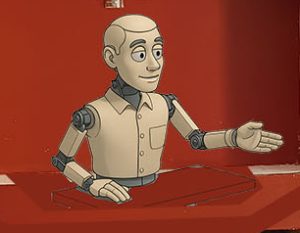 Le buste constitue la partie supérieure de l’automate, reliant la base fixe au bras motorisé et à la tête. Il est conçu pour reproduire des mouvements réalistes d’un guichetier accueillant ou interagissant avec le public.
