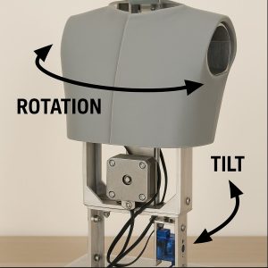 Tête expressive : rotation et inclinaison réalistes via deux servomoteurs et un système à biellettes inspiré du projet Rob Ives