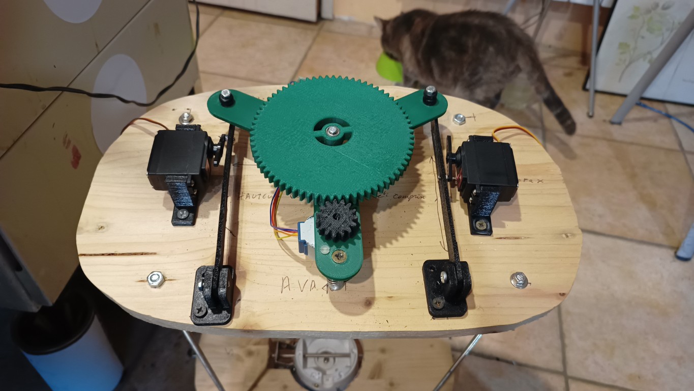 Transmission par engrenages imprimés en 3D ou courroie GT2 pour limiter le jeu.