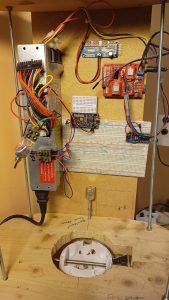 - Rotation tête : Commande Arduino Uno + CNC Shield (montée sur la Uno), test de mouvements aléatoires de la rotation tête avec tempos, rampes d’accélération et décélération) –> OK