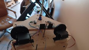 - Triangle support tête manœuvré par 2 servos, inclinaison de la tête sur les côtés et en avant/arrière