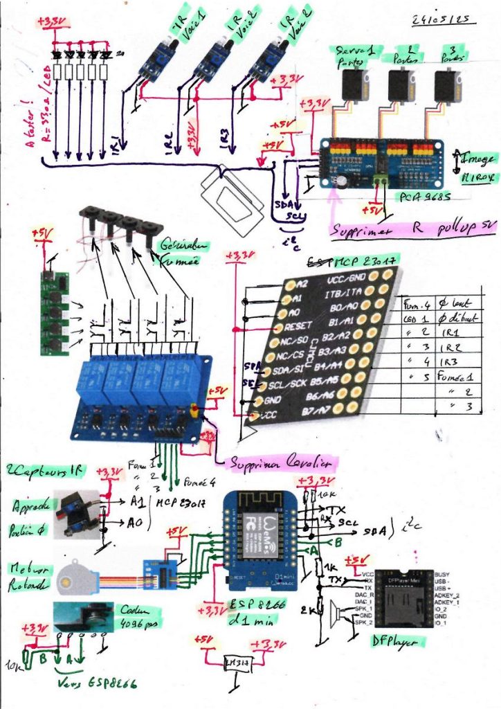 - Un ESP8266 d1mini avec un cœur ESP Home permet la commande des moteurs, éclairages et sons de la zone Rotonde :