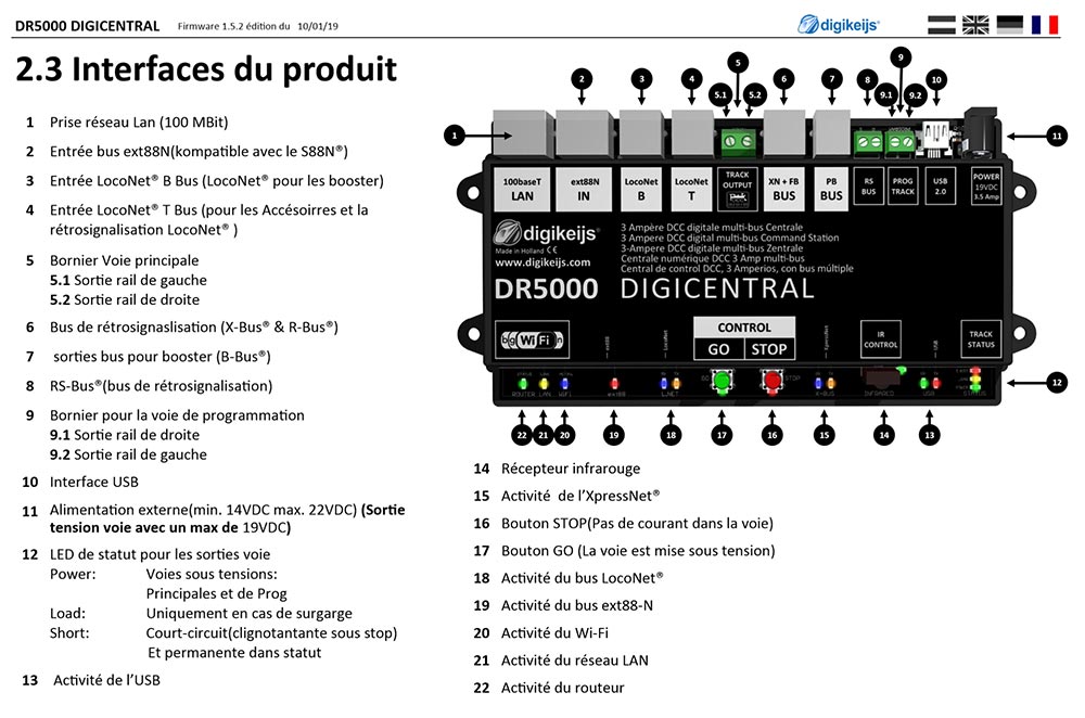 Multiples bus pour la rétro-signalisation, connectique très complète.