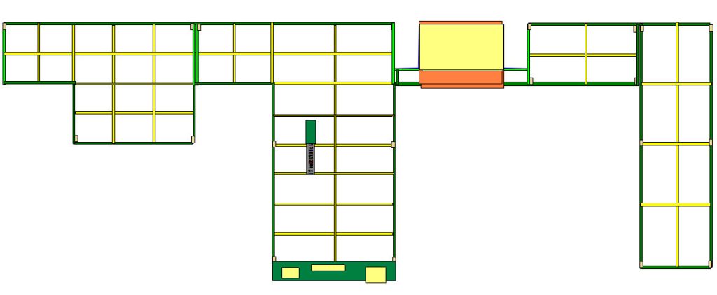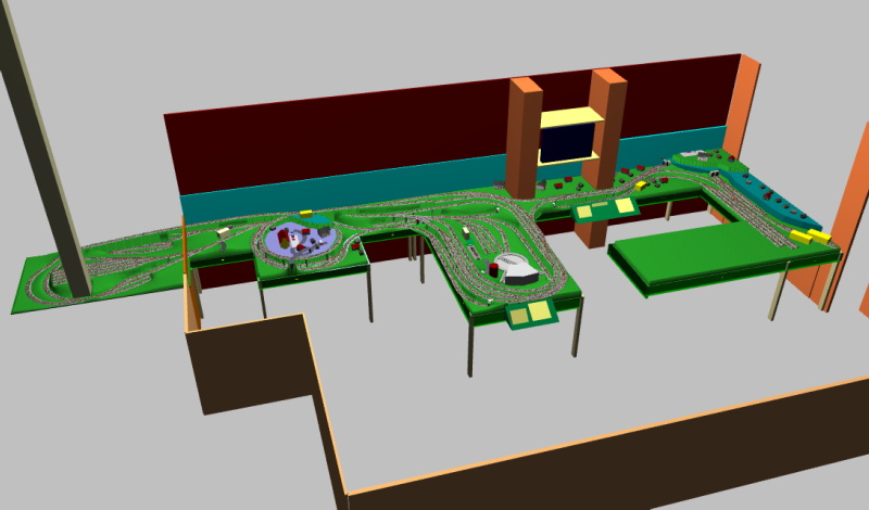 – A droite, le plateau vert est incomplet, il rejoint le plateau central avec de multiples boucle, gare voyageur, poste d’aiguillage, …