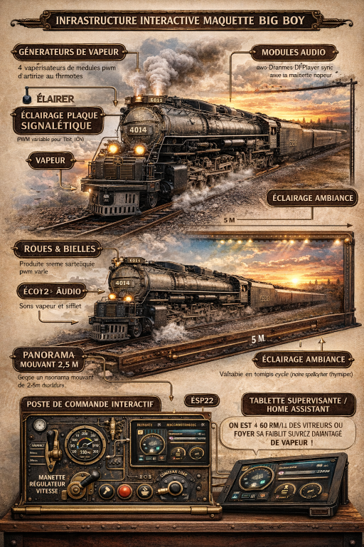 Le projet vise à créer une interface immersive et ludique, inspirée d’un poste de conduite simplifié de locomotive vapeur "Big Boy" échelle 1/15e (soit 1,2m de long) en expérience interactive, notamment pour un public familial ou enfant.