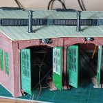 Rotonde avec 3 portes commandées par servomoteur, détecteur de présence loco, éclairages, générateurs de fumée