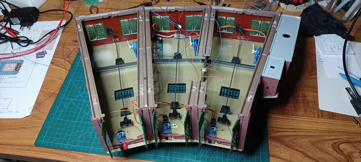 • Un ESP8266 d1mini avec un cœur ESP Home permet la commande des moteurs, éclairages et sons de la zone Rotonde
